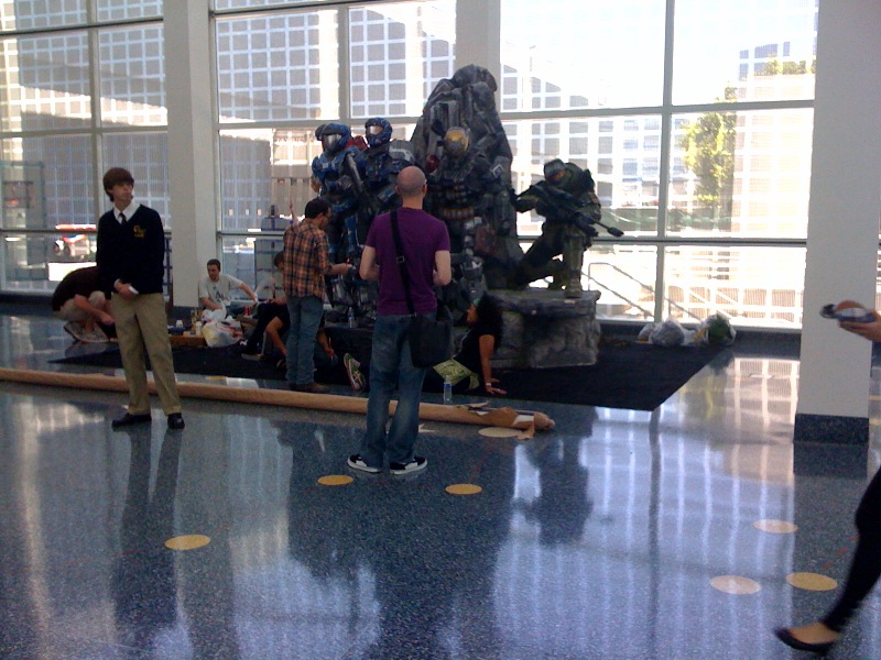 Walking to lunch today, we had a couple surprises. It seems Microsoft has decided to put out an awesome statue for Halo: Reach in the E3 main hallway that a group of artists were finishing on the spot.