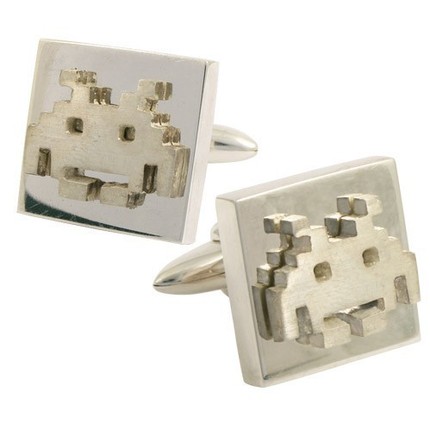 I've seen my fair share of sweet cufflinks in the past, but I have to admit that these Space Invaders cufflinks are to die for, understated, and, above all, geeky.