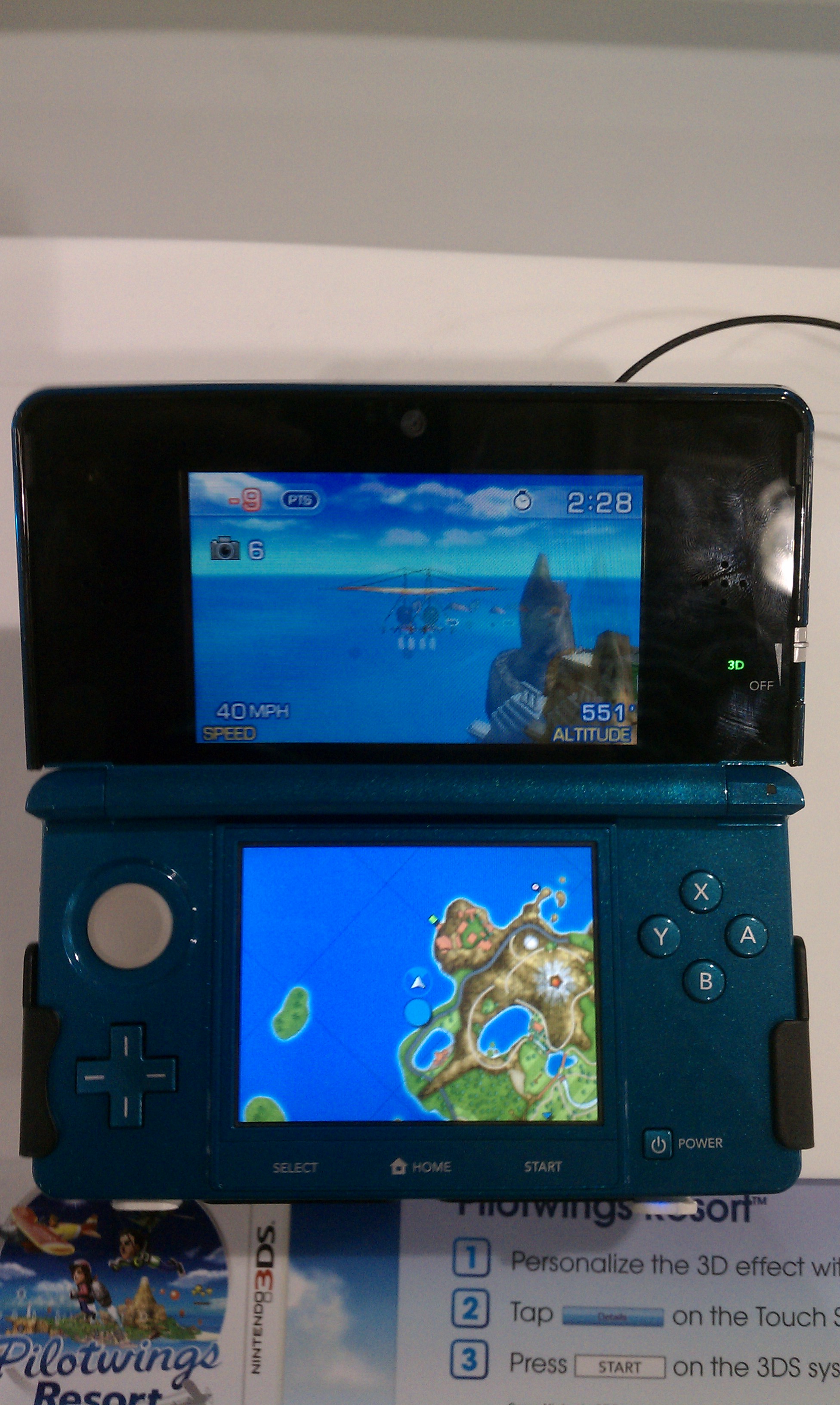 Like the demo units at E3, the Home Button was disabled. This prevented me from being able to check out the 3DS menu and play with the variety of other tools included with the system. However, access to the full version of PilotWings Resort was fantastic.