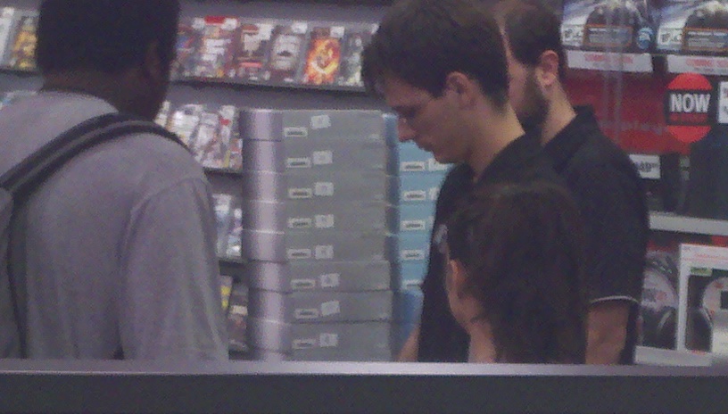 Now I just needed the games. I ventured back into Wal*Mart, hoping for the process to be simple and easy: join the back of their 3DS line (which hadn't existed at the time I left the store earlier, around 11:40, but I imagined would after midnight.) Bad news: The cashier wasn't at the register. It seemed she had to step away to assist with the purchase of a TV. Fair enough. Other bad news: there was still no 3DS line. Apparently, contradicting my contact's number, the store had 8 total 3DSs in stock, and at 12:15, not a single one had been purchased. After some time, the cashier returned and asserted that I was the first in line for 3DS purchases. I was a little shocked, as I'd arrived after some of the people in the store who were clearly interested in buying the device, but I suppose never had the courage to ask, “Where are your 3DSs?”