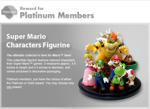 Gold members will yet again receive a calendar while platinum members will receive a figurine featuring Mario characters.