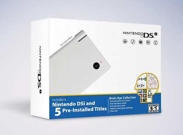 The second bundle offered features a white DSi with a theme more aimed at the puzzle fanatic. The white DSi bundle will come preloaded with Brain Age Express: Arts and Letters, Brain Age Express: Sudoku, Brain Age Express: Math, Clubhouse Games Express: Card Classics, and Photo Clock.