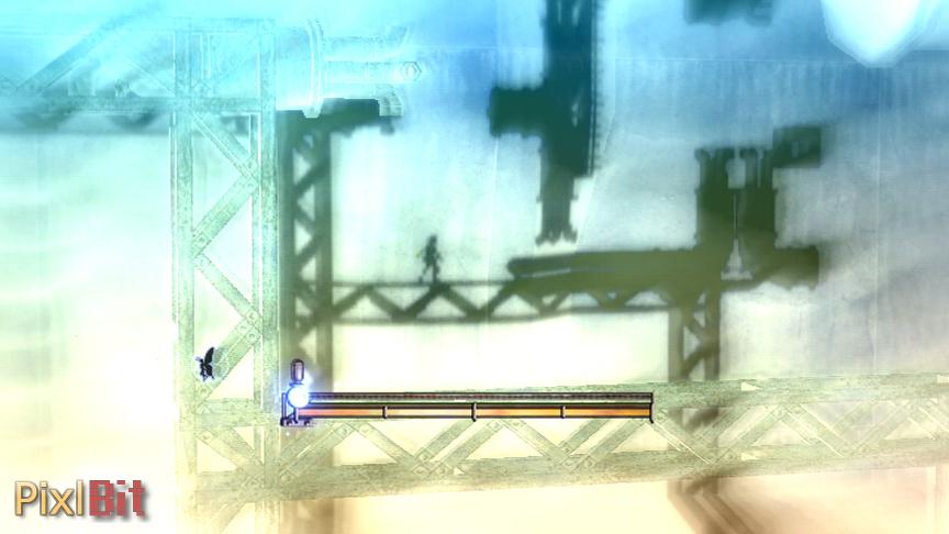 Upon starting to play, it's clear that you won't be moving around in the real world, but on the shadows cast there instead. Things start out relatively simple with basic platform jumping over voids, which is then followed by an introduction to both memory and level instruction markers. Level instruction markers are no more than tutorial-like descriptions that explain whatever it is that you are about to encounter. Memories, on the other hand, perform two functions. On one hand, they progress the story by presenting the player with a short blurb of text, on the other, they also make your shadow heavier. The weight of your shadow is actually your life bar, so reading memories slowly boosts the maximum weight throughout the level.