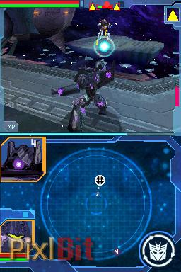 Transformers: War for Cybertron on the DS comes in two flavors: one for an Autobot campaign and the other a Decepticon campaign. Each title has players controlling the titular group of Transformers through a completely unique third person shooting, battling, and platforming quest. As players complete missions and collect data disks in the levels, they unlock new Transformers to play with as well as stat upgrades to improve their current bots.