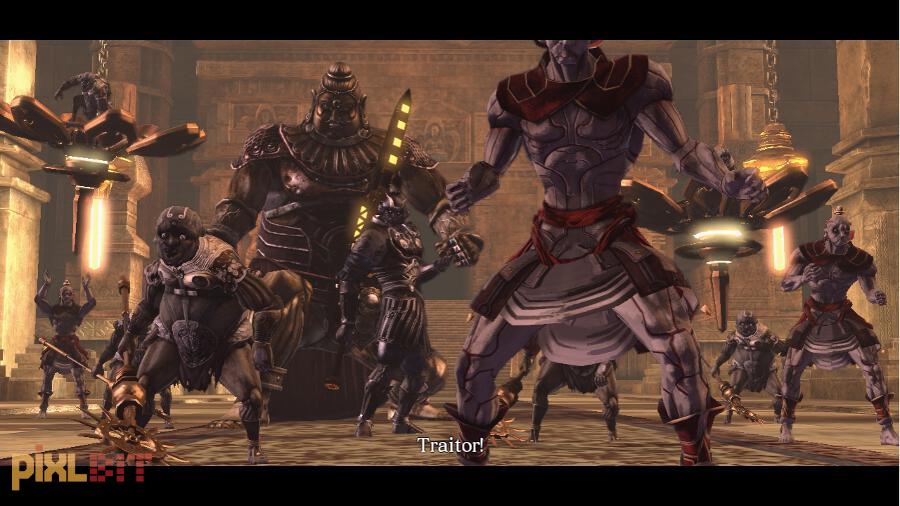 Unfortunately, the character of Asura has zero personality. He has three emotions: seething, pissed off, and enraged. He’s even less defined than God of War’s Kratos, and makes that character look like a calm and level-headed dude by comparison. This is a problem, because while the story of Asura’s Wrath is an interesting tale of betrayal, revenge, and religion, the titular character has no room to grow. Giving him some humor or levity could have gone a long way to developing a memorable character. After all, Son Goku may be able to disintegrate planets with a flick of his wrist, but at the end of the day he’s a pretty affable fellow. Asura, on the other hand, is merely a means to unleash eye-popping attacks with all the bombast and style you would expect from a well-animated anime series.