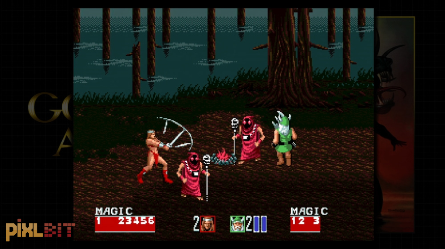 Taking a page from Capcom’s excellent Final Fight Double Impact collection, this compilation of Golden Axe features a menu with all three games playing on screens. The first game is of course the original arcade cabinet, and Golden Axe II and III are displayed on old CRT televisions with a lovingly rendered Sega Genesis system perched on a table. All three of the games have a plethora of options to tweak, including the must-have ability to put a “scan line” filter over the screen to emulate the way these games looked on CRTs. I give major kudos to the fine folks at Sega for all the bells and whistles included in this collection; especially the ability to use the original arcade art as your wallpaper for the first Golden Axe. You can even stretch the picture out to fill a widescreen TV, but why would you do that?