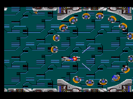 It’s a shame because, when it isn’t bogged down with flicker galore, the game’s visual quality is nothing short of gorgeous- as evidenced in the first stage. The background nicely fades from the infinite starfield into the alien base, complete with blinking lights and rotating sentries encircling your ship. Without question, an effort was made to mimic its arcade equivalent; it’s just hard to appreciate the further you advance in the game because of the flickering.